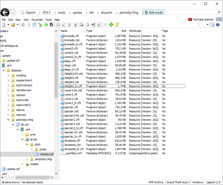 Installing Vehicles with OpenIV Cj24 Jun 4th 2017 66,129 0 Detailed information regarding the installation of vehicle mods using OpenIV.