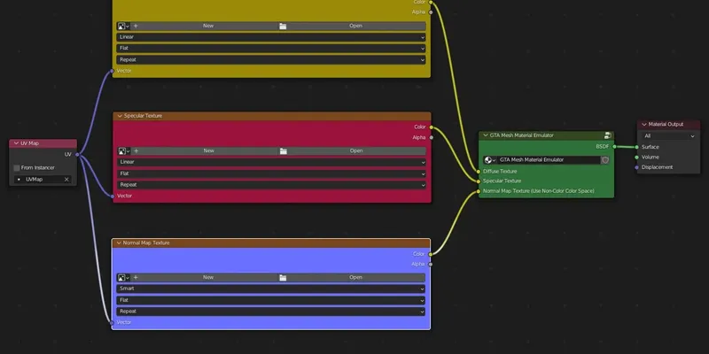 Blender GTA Mesh Material Emulator Node