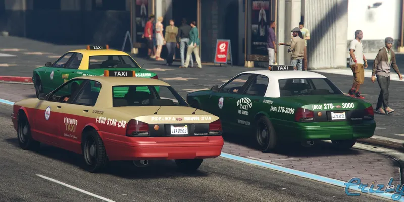 A lore-friendly livery pack for the Vapid Stanier Taxi with various taxi liveries inspired by the Los Angeles area (CA), and some original designs.