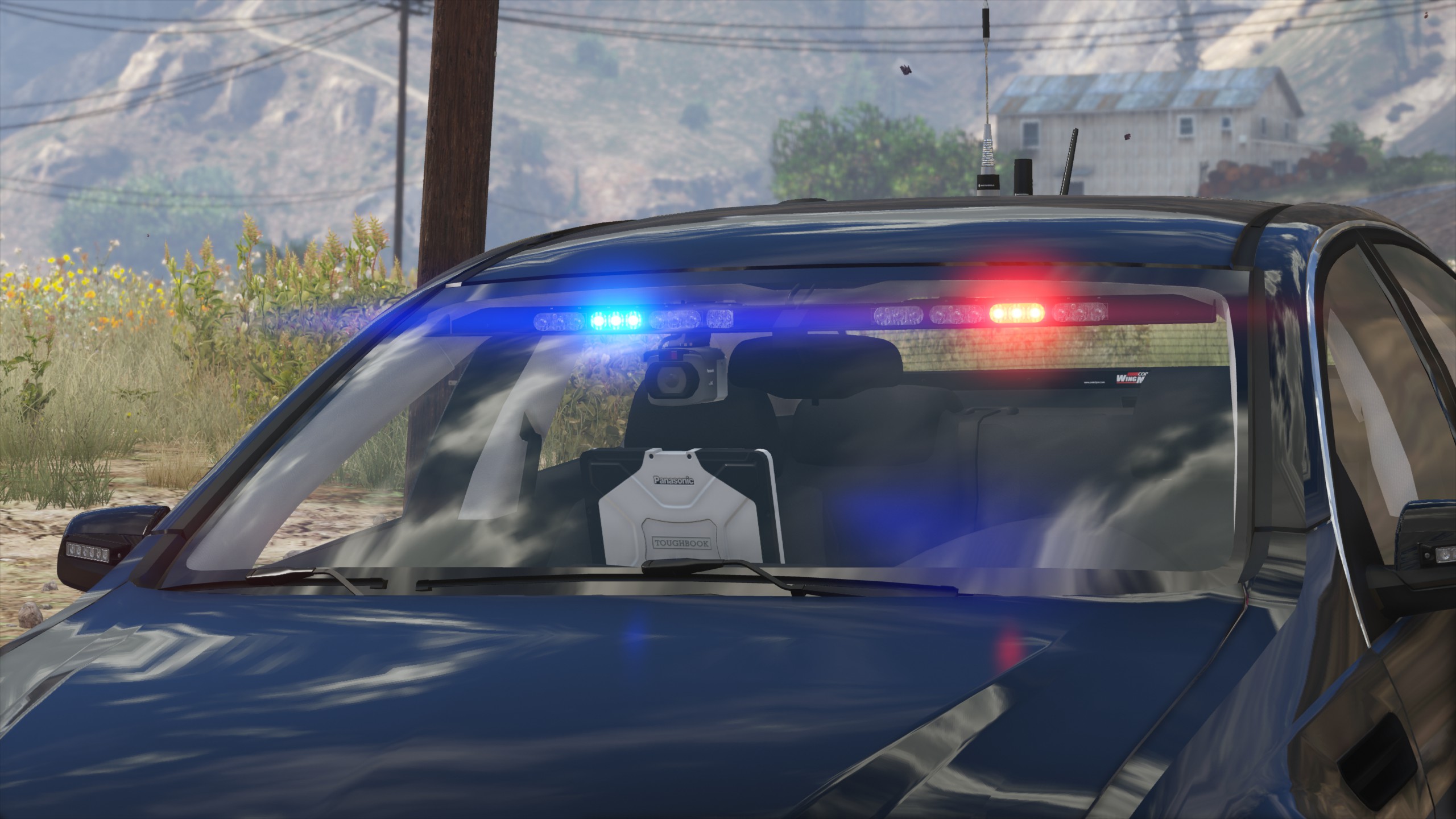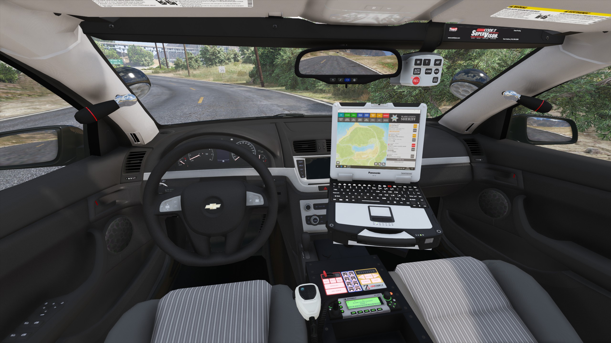 - Console, Code 3 Z3 siren controller, C3100 siren speaker, weapon mount, Panasonic Arbitrator dashcam, Panasonic Toughbook, SoundOff Signal dome light, Unity spotlights, and antennas modeled and textured by Cj24.