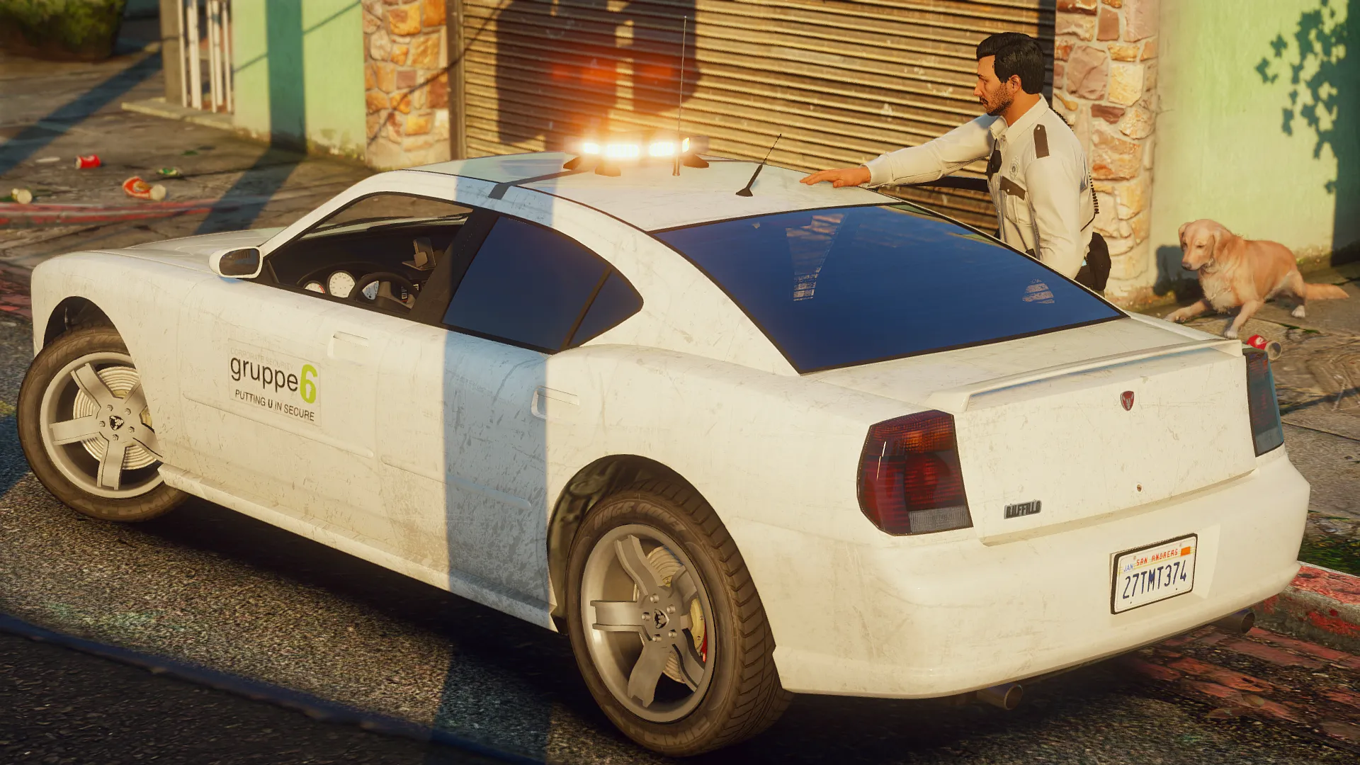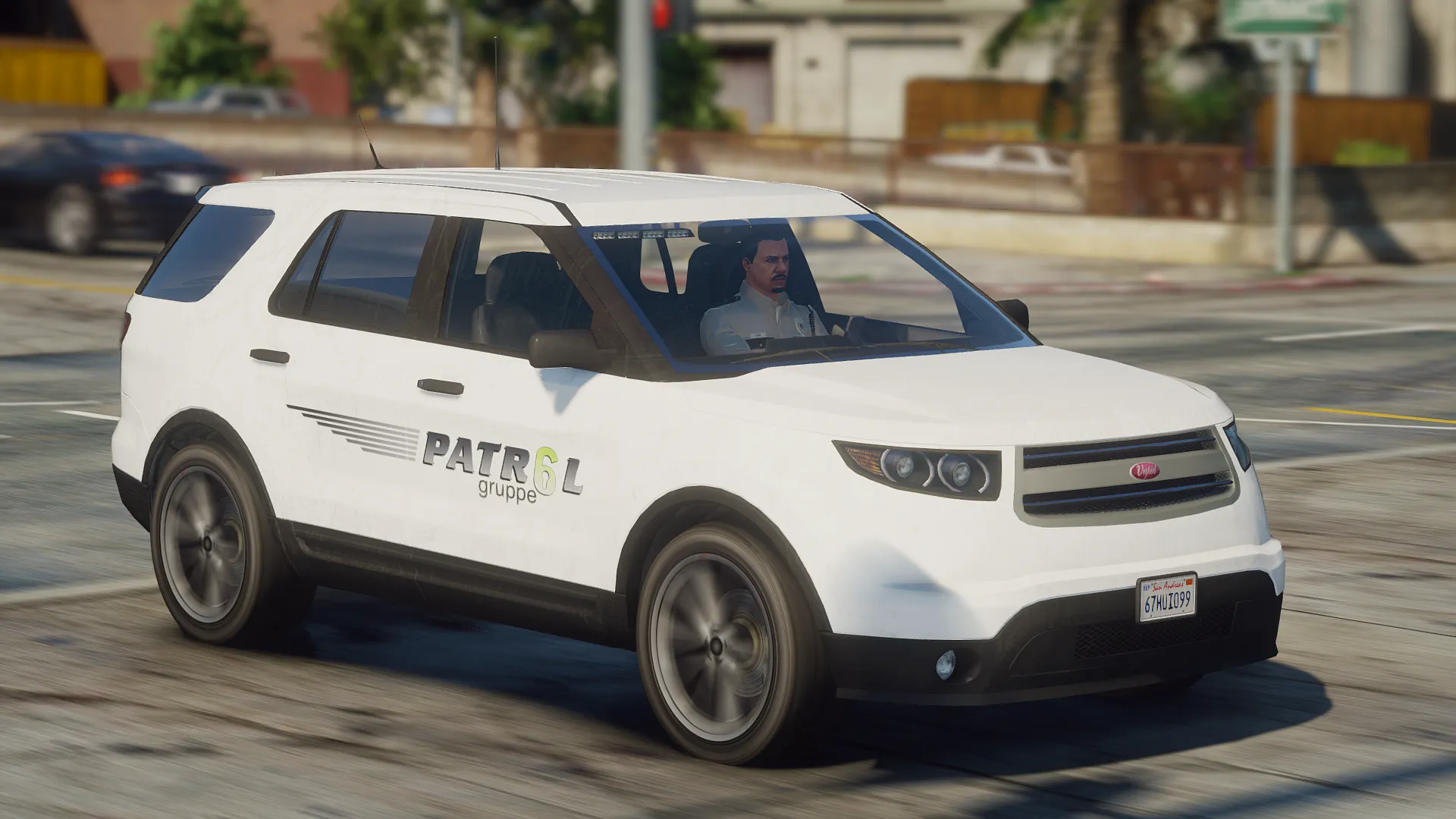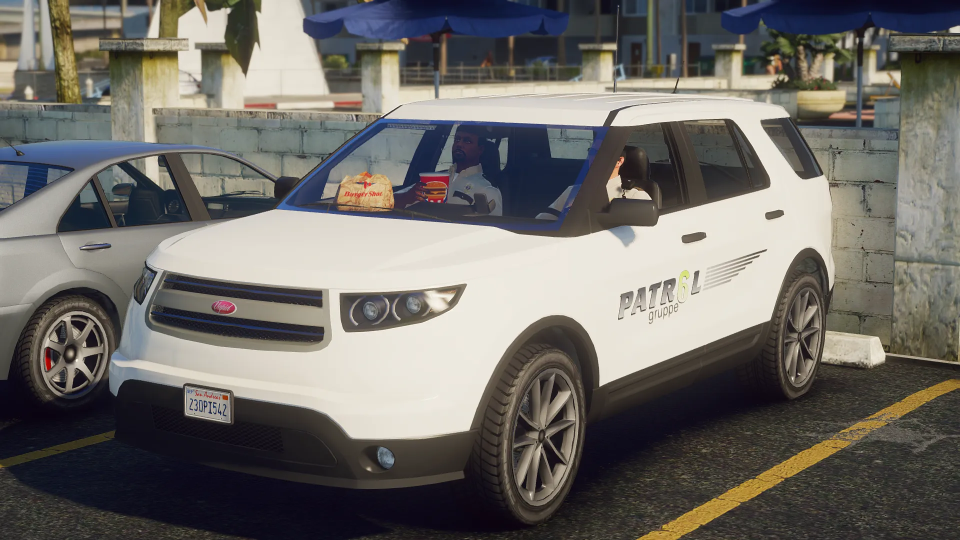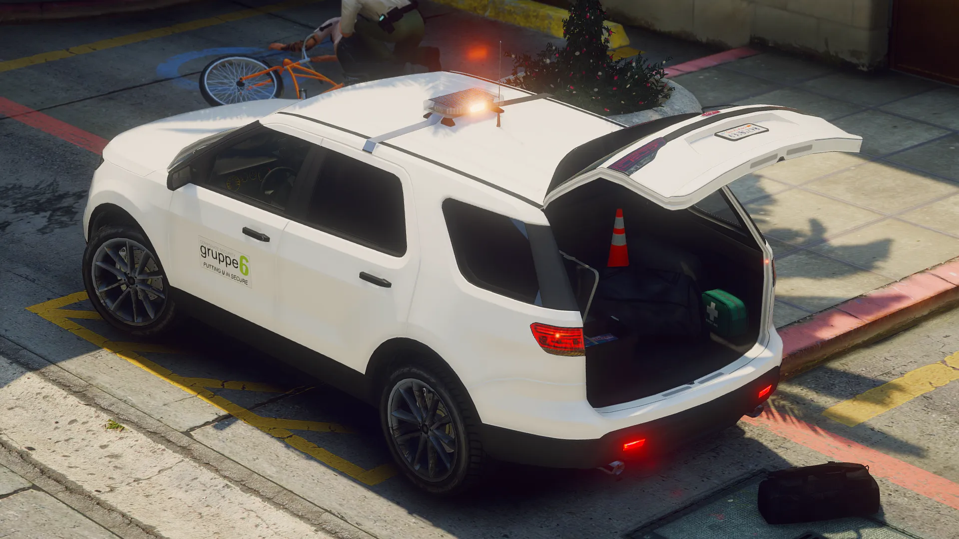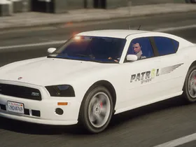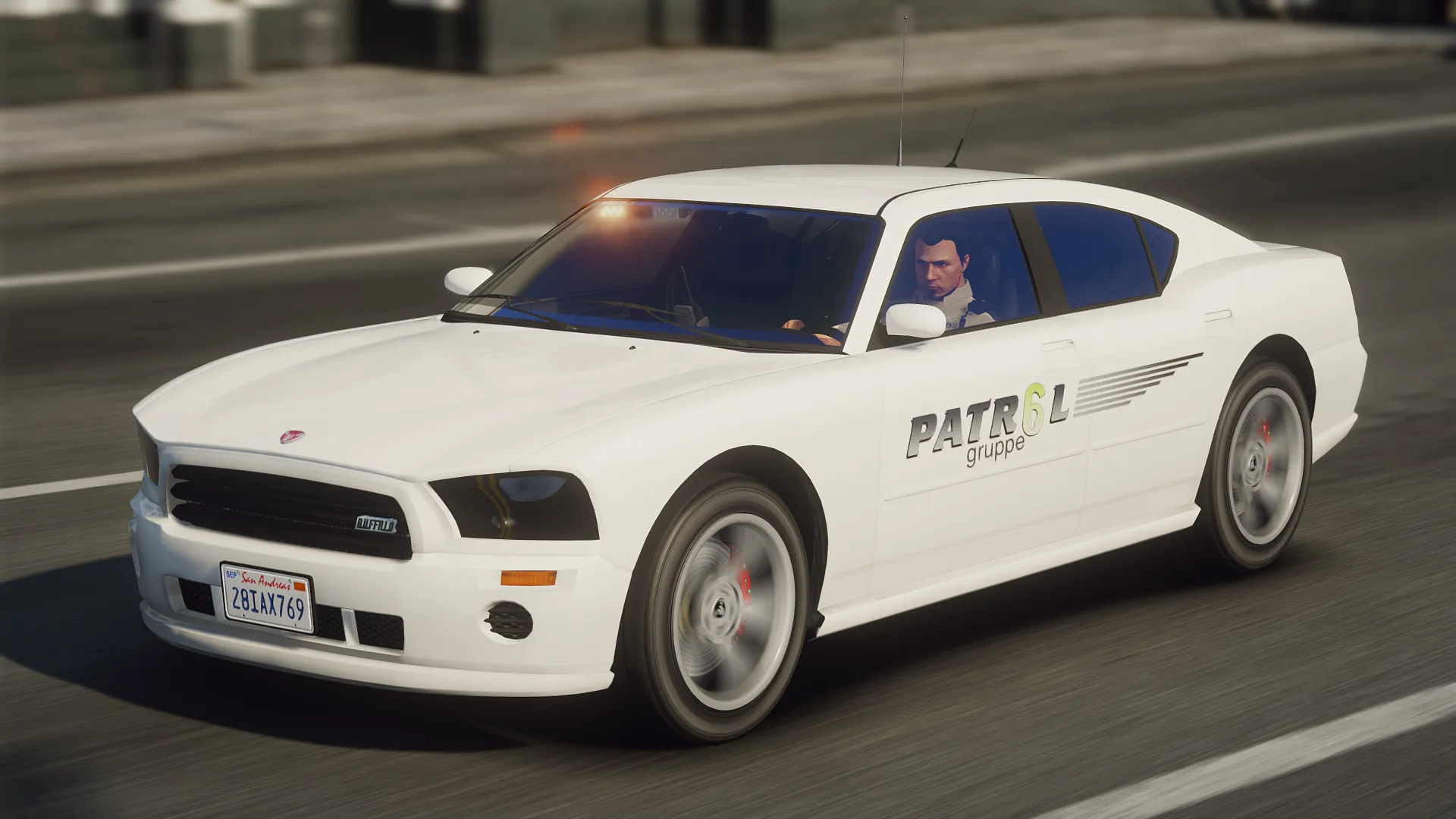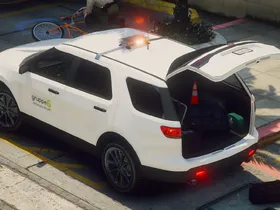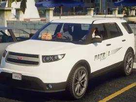 A lore-friendly mini-pack for Gruppe6's patrol division featuring a fictive design inspired by various US security firms. The pack includes one Bravado Buffalo and one Vapid Scout with optional extras, enabling it to be both a slicktop unit and/or have a roof mounted lightbar.