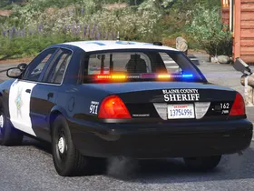 A California-inspired non-ELS BCSO Ford Crown Victoria Police Interceptor with a Code 3 RX2700 lightbar.