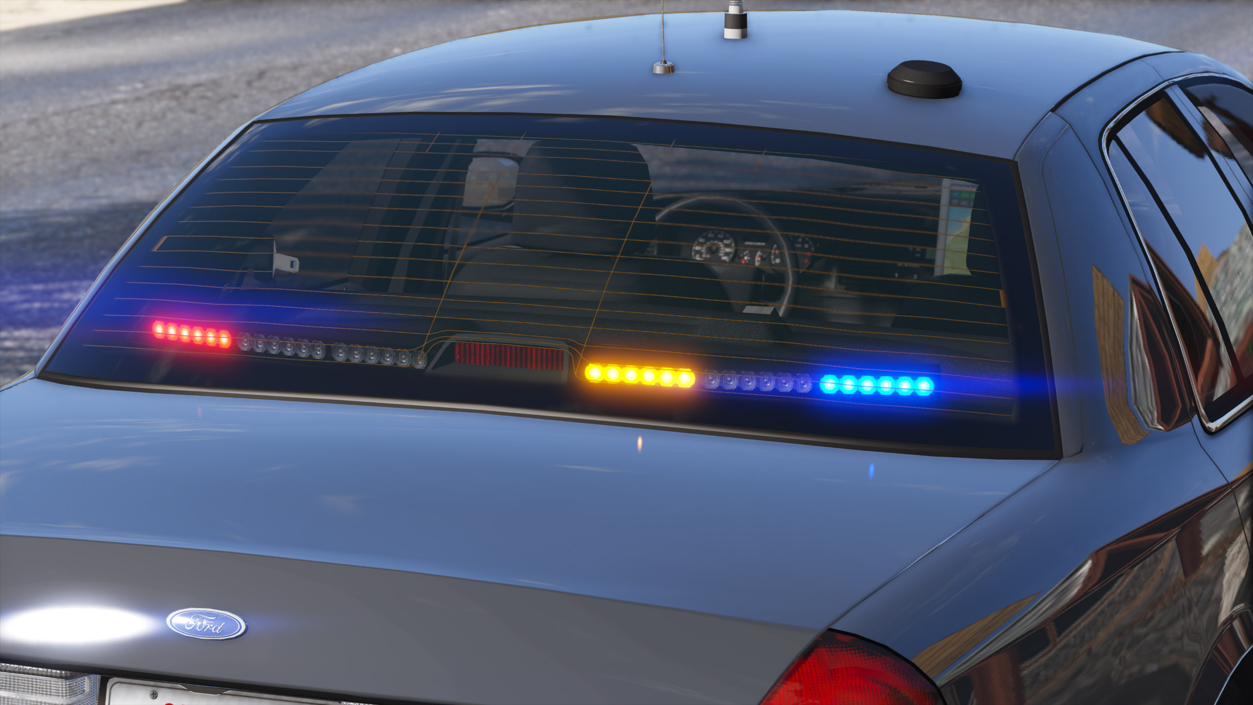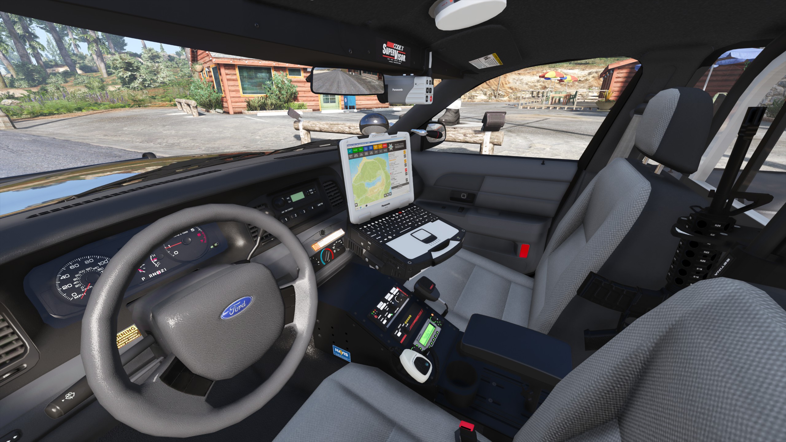 - Setina PB400 pushbar, Code 3 Mastercom and ArrowStik controllers, C3100 siren speaker, Havis console, Setina partition and weapon mount, 870 shotgun, Panasonic Arbitrator dashcam, Panasonic Toughbook, SoundOff Signal dome light, Unity spotlights, and antennas modeled and textured by Cj24.