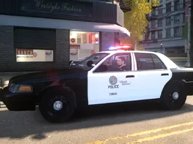 A fictional LSPD Crown Victoria based on LAPD's 2006 CVPIs. Two versions are included, one with hubcaps and one with steel rims. The pushbar is set up as extra_10 and therefore spawns randomly.