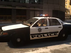 A 2008 LVMPD Slicktop CVPI featuring high quality liveries made by sixium.