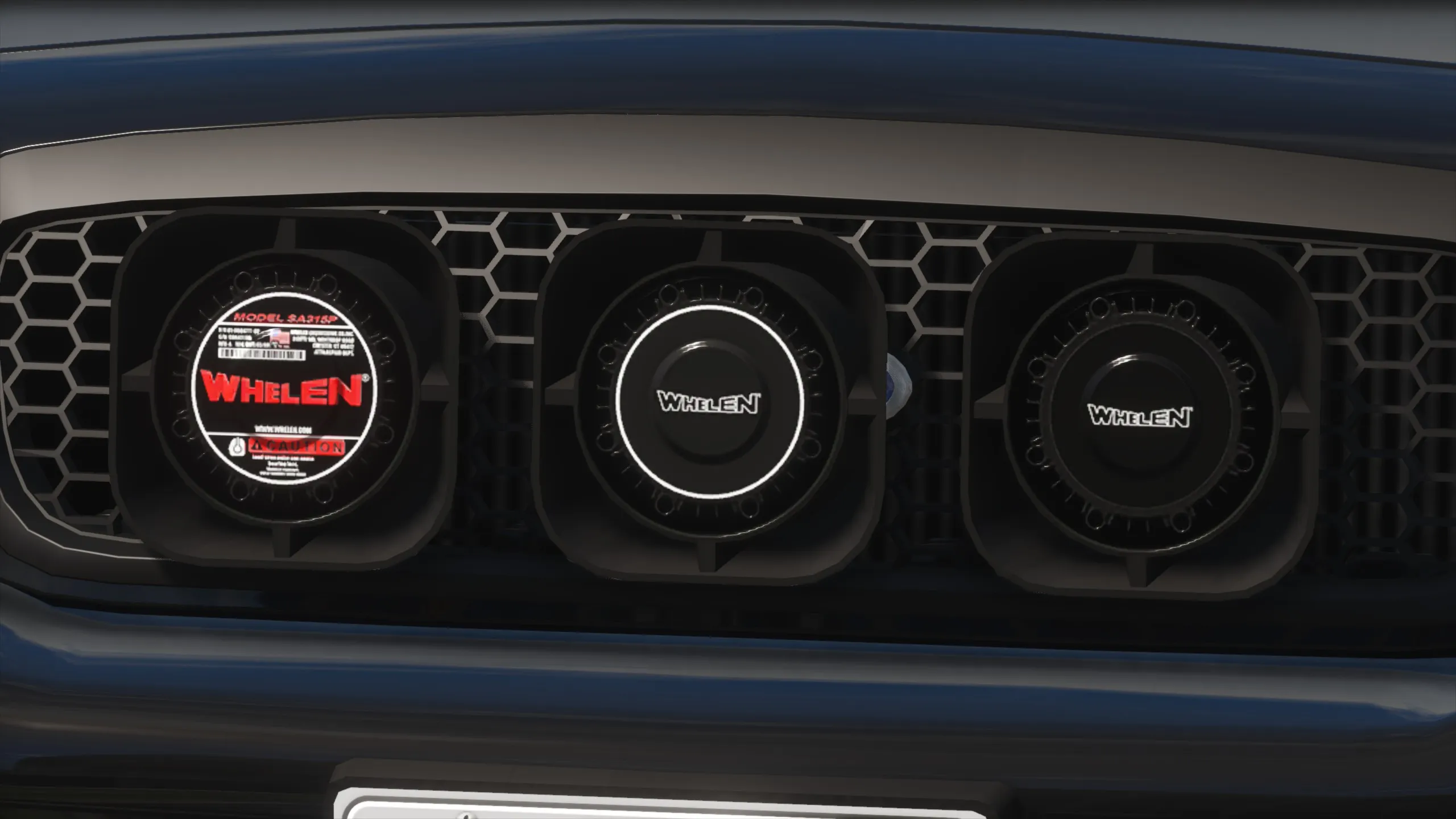 A Whelen SA315P siren speaker, including 3 different sticker variations.