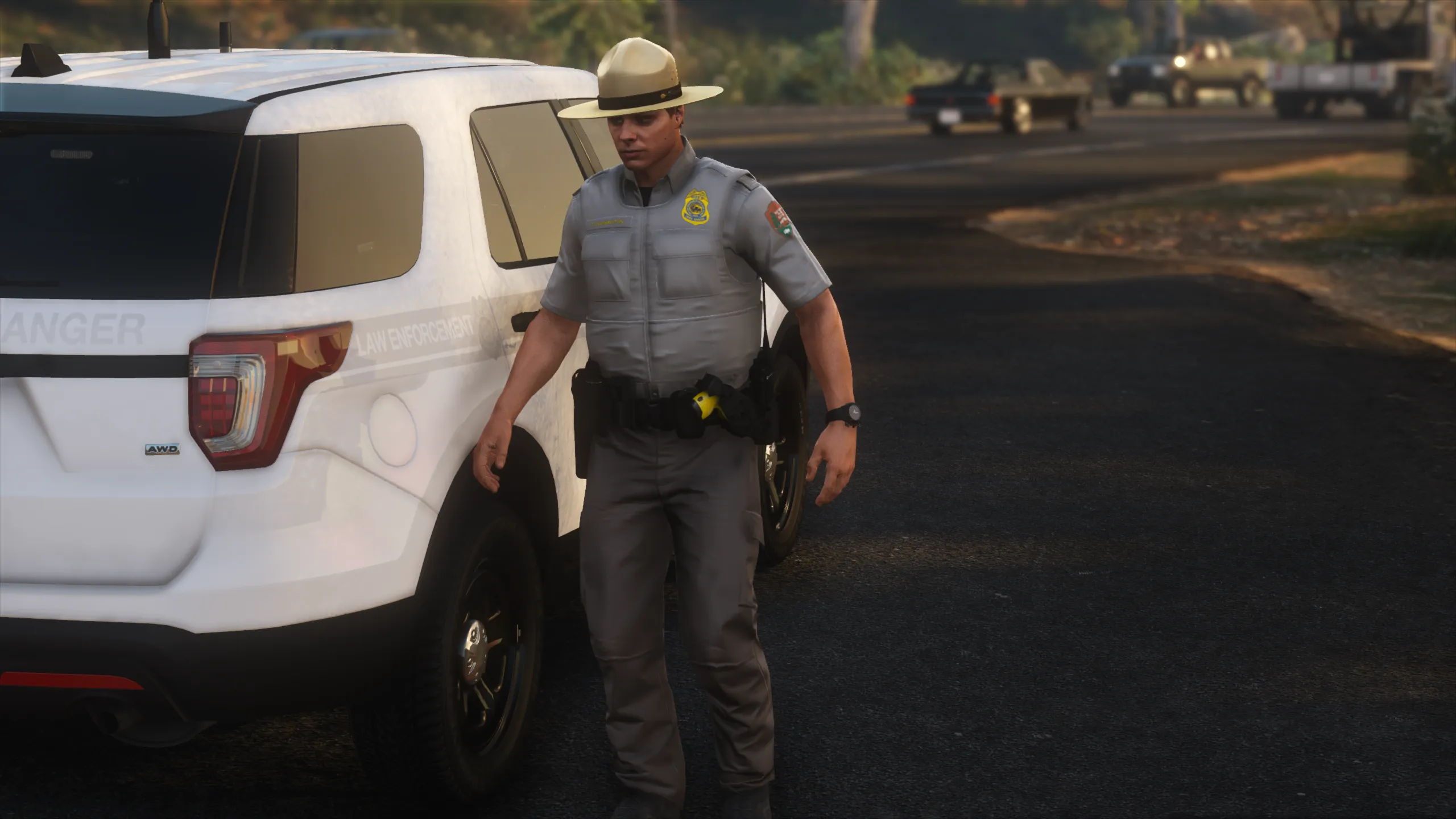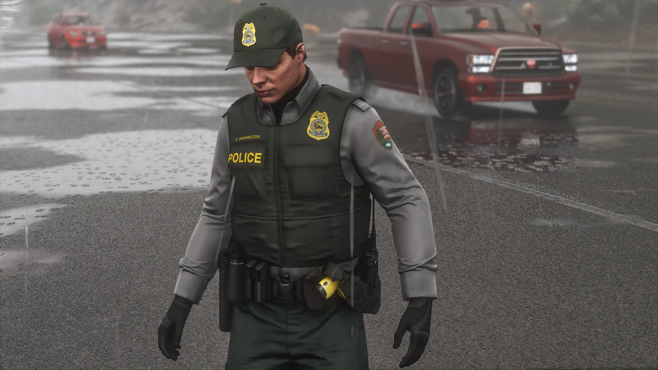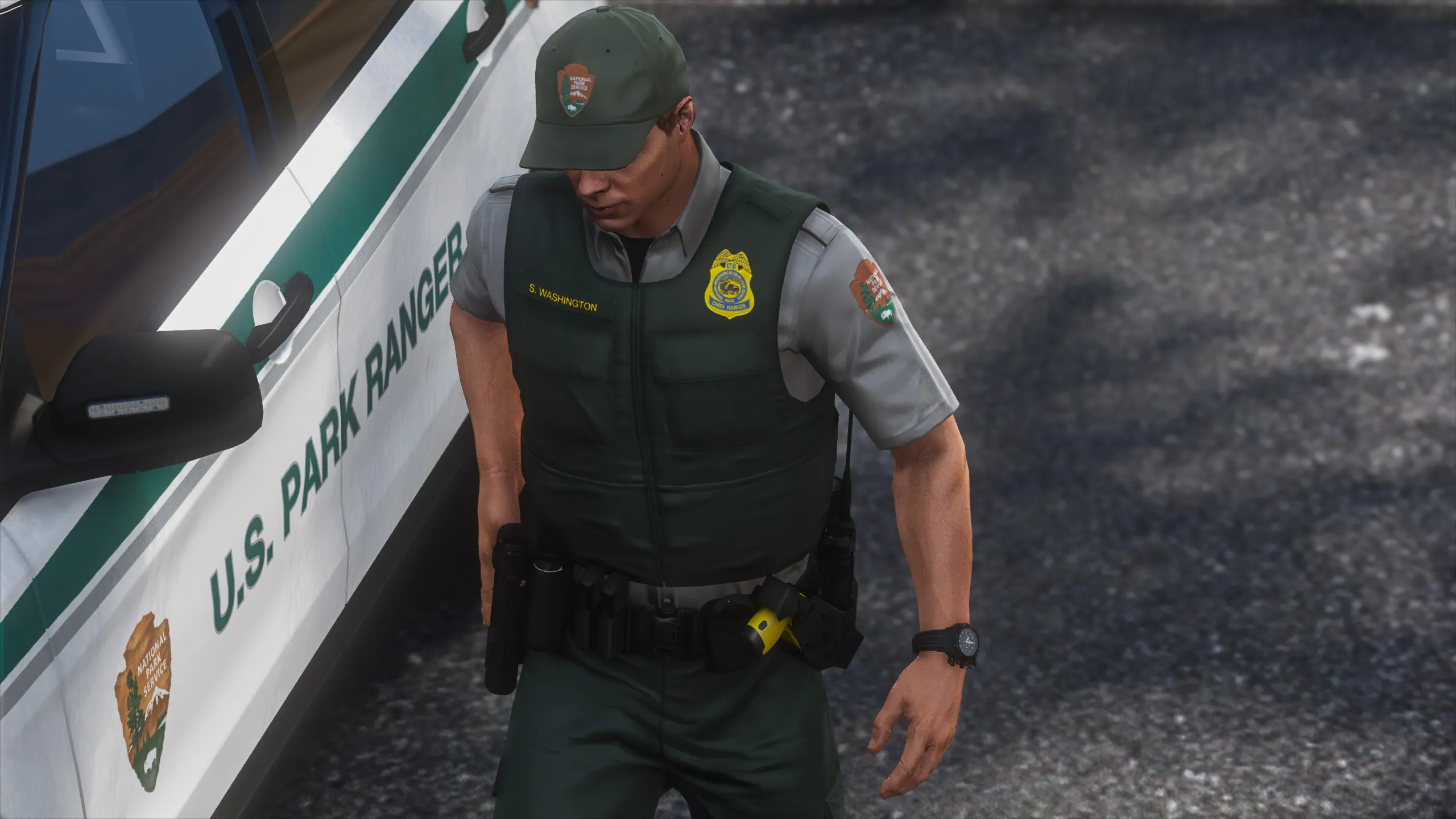 I started this project a long time ago when Ranger Rick got me interested in Federal Land Management LE. Since then I've learned a lot and gained new skills and techniques until I arrived at a result I was happy labeling as completed. There is a lack of vests in GTA that are lighter-duty and don’t look like you’re gearing up for war. This vest is perfectly minimal and utilized by US Forest Service, US National Park Service, US Fish and Wildlife Service, and the Alaska State Troopers. The vest was minimized to a low poly count and includes 3 LOD's for in-game optimization. Huge shoutout to Agent's Workshop for keeping me motivated throughout my struggle with this project, his amazing screenshots, and the textures he made for his NPS pack!