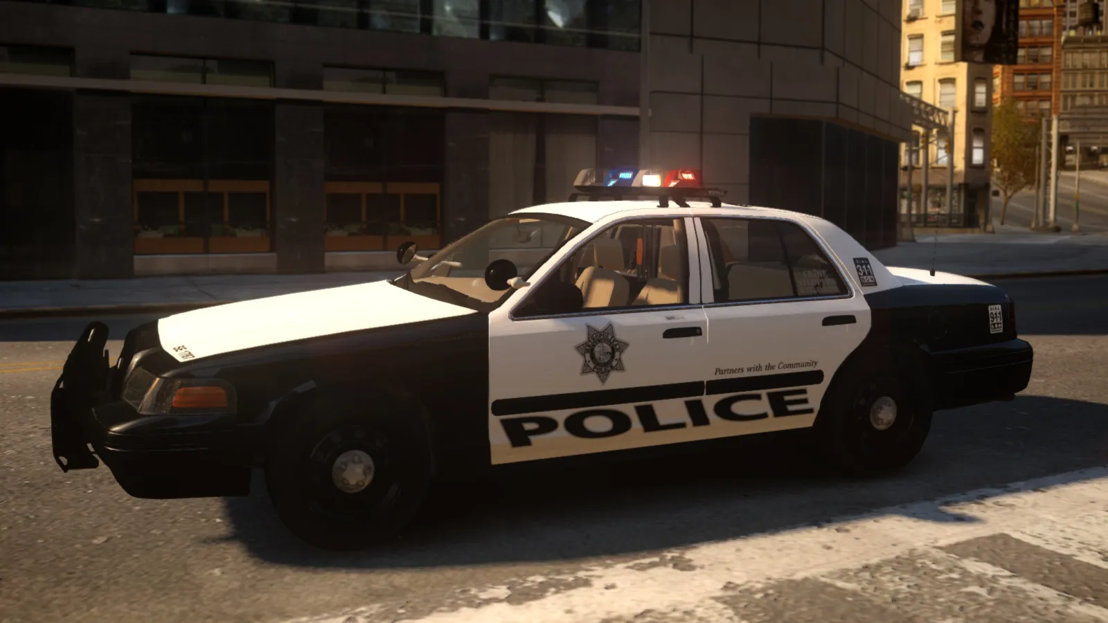 A 2008 LVMPD CVPI with a FS Vision lightbar using LVMPD's LED and rotator setup. Featuring high quality liveries made by sixium.