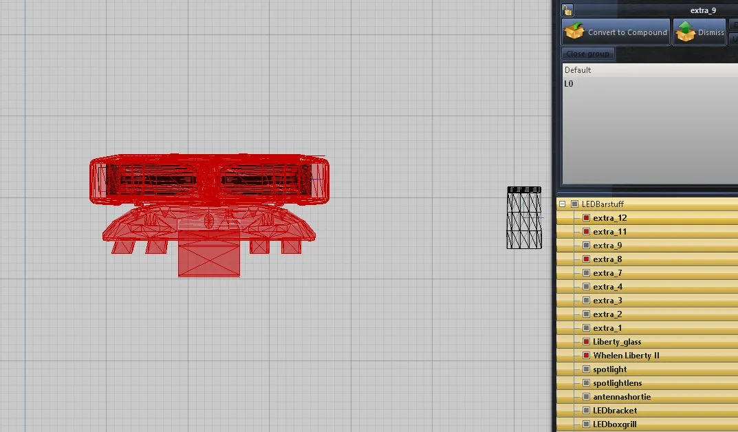 I have a lightbar that I am trying to make larger. So I try to scale it a little larger. I first try to select the entire lightbar (as seen in the screenshot; objects turn red) and then just move drag the mouse upwards which rescales it. Unfortunately, it seems to not affect the elements inside the lightbar. Those components can't seem to be selected. And as you can see from the screenshot, those objects stay black. Can't seem to select or grab them with the lightbar.