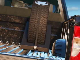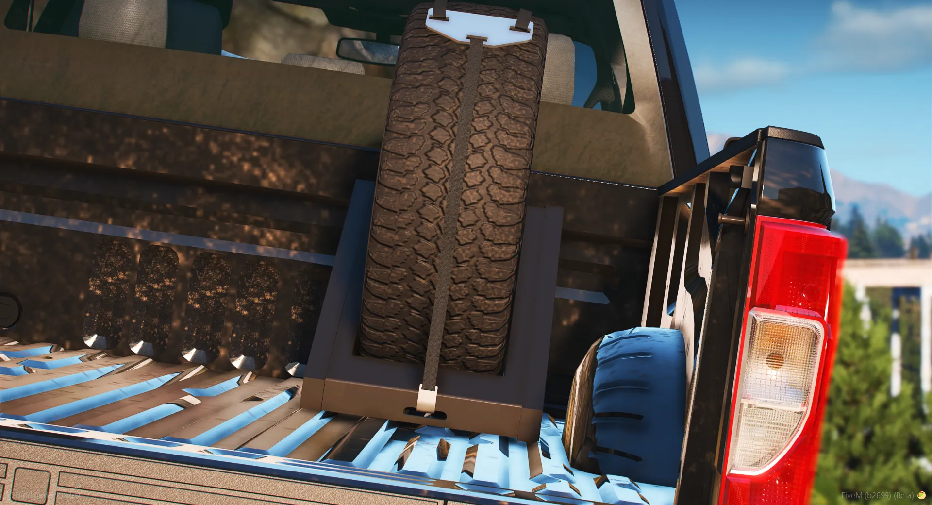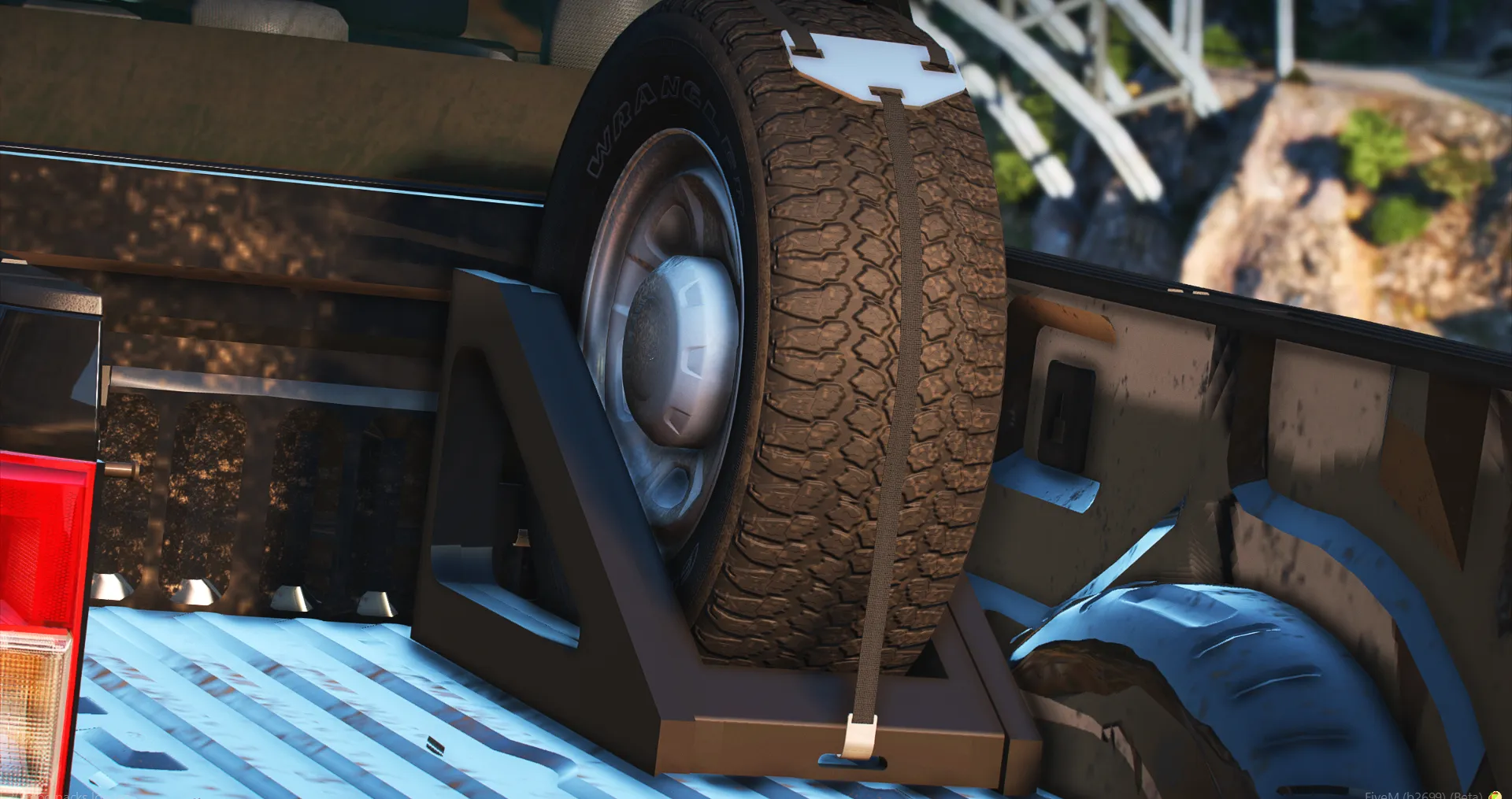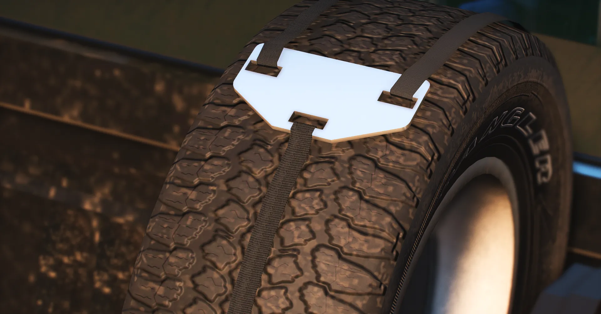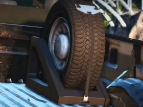 I made this tire rack that fits GM wheels, you can also use any other wheels for it. In these photos there are some texturing issues but they have been fixed on the straps.