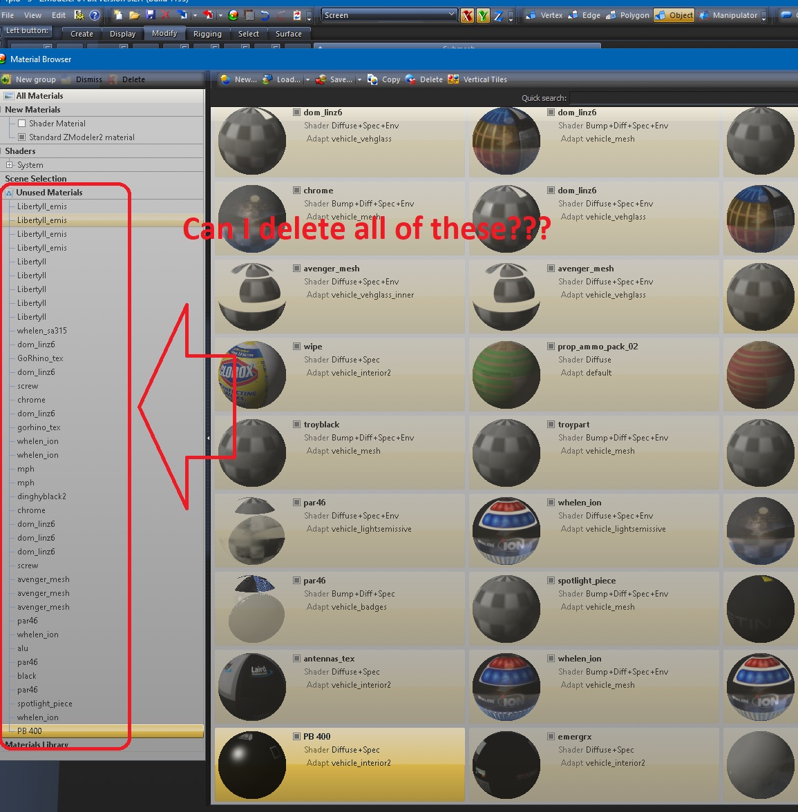 I've often been afraid to delete the materials under the 'unused materials'....
