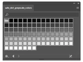 This is an Adobe Swatch Exchange file which contains swatches for all greyscale colors which can be safely exported by the NVidia Texture Tools DDS exporter without discoloration/tinting due to DXT compression.
