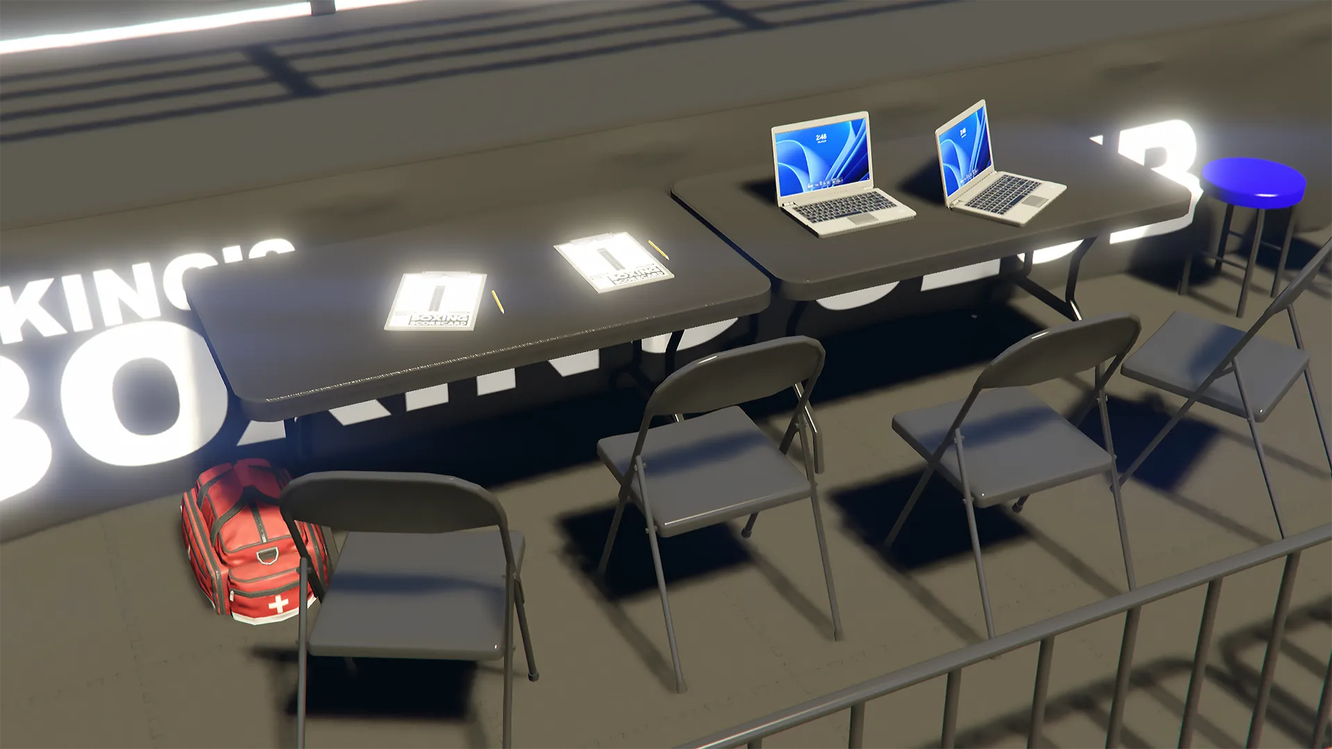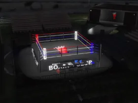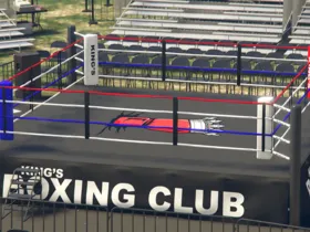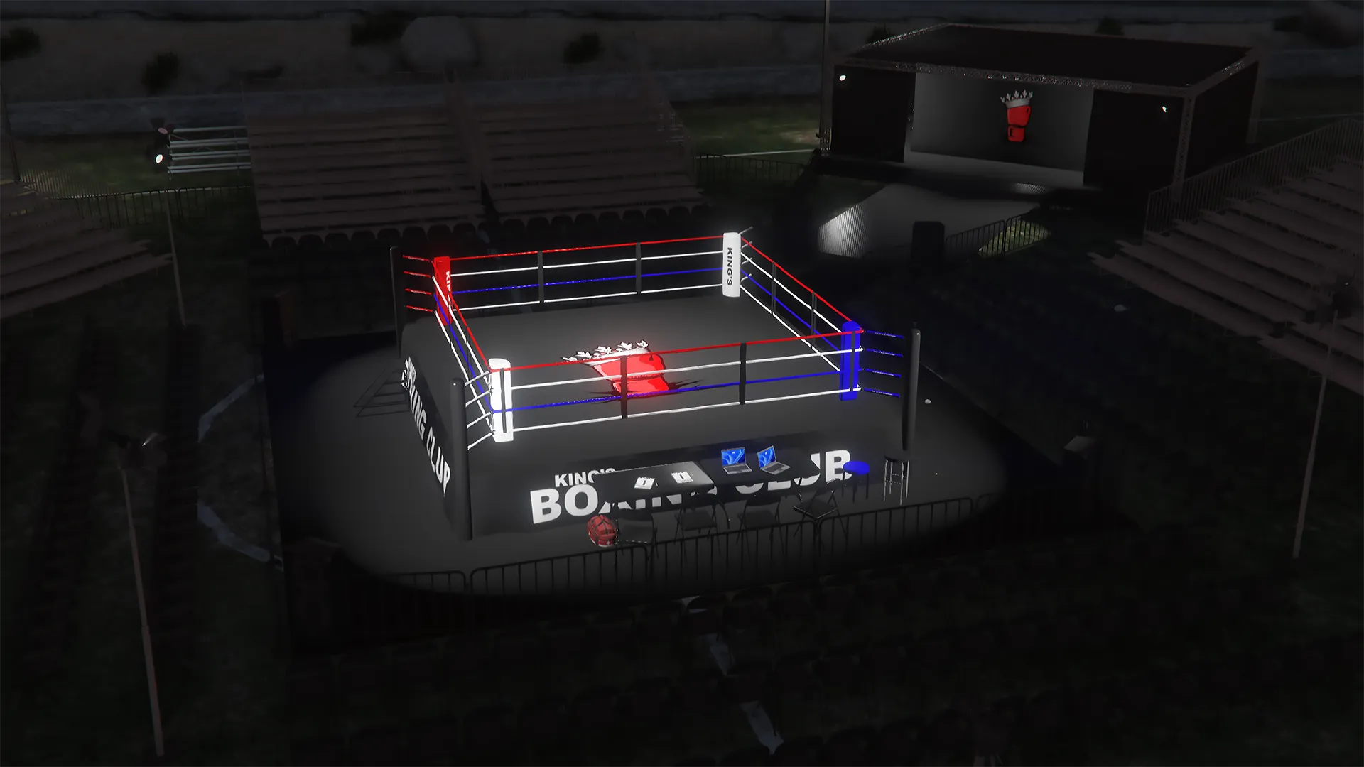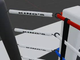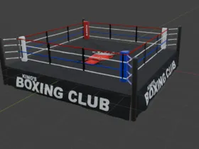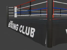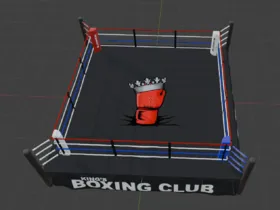 Recently been learning more about Blender and diversifying my portfolio. Here's a lore friendly boxing ring and branding I put together. Give me thoughts and pointers if you have any.