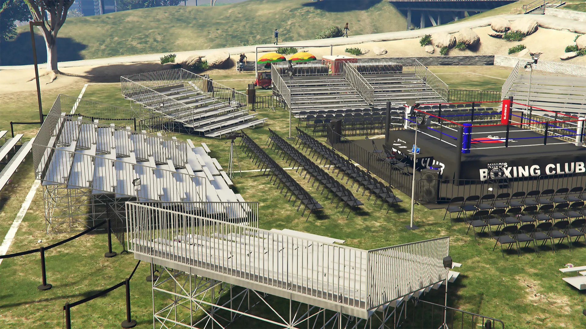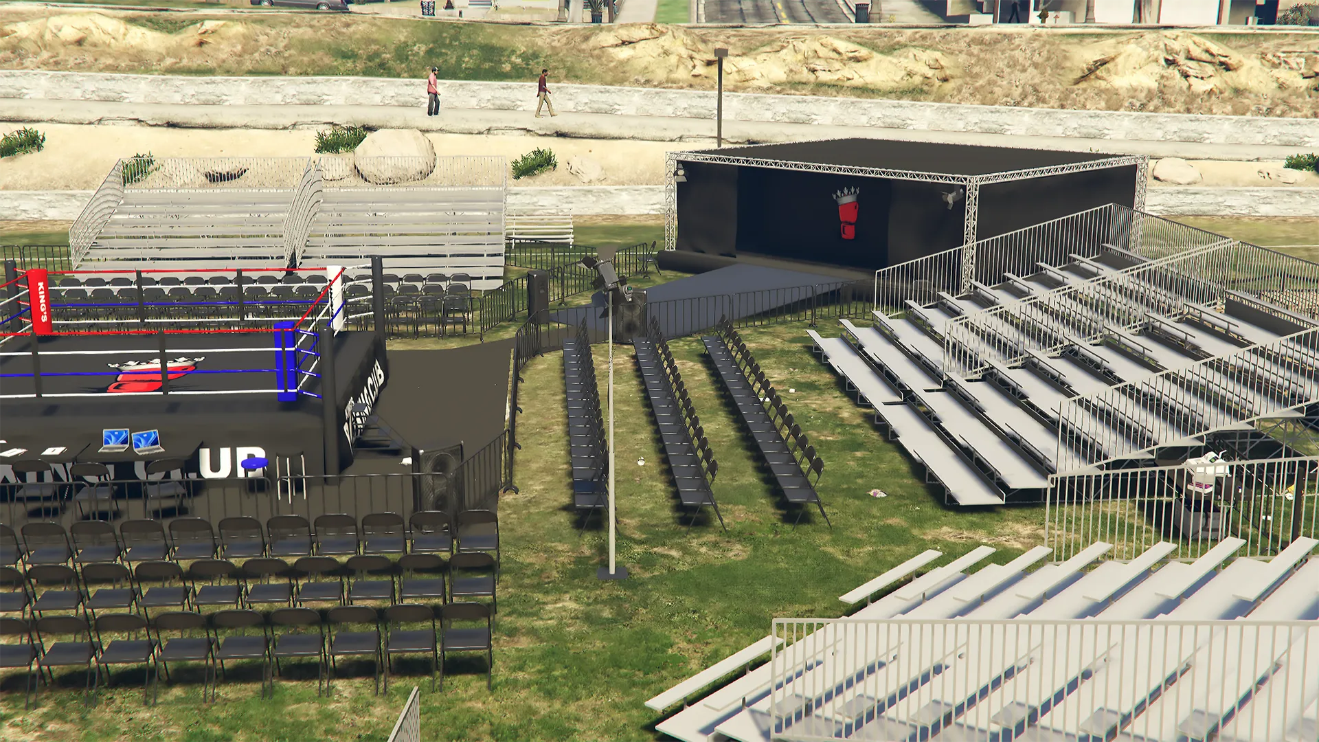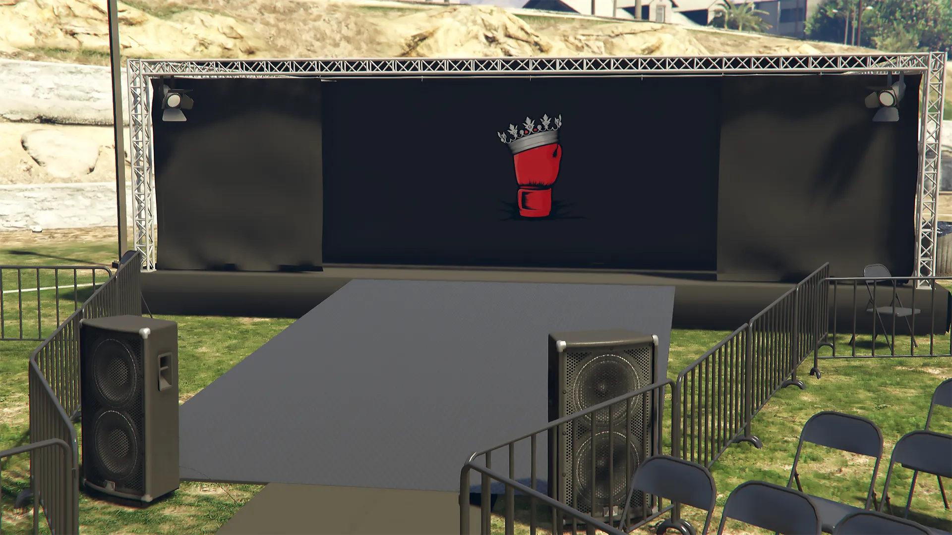 Recently been learning more about Blender and diversifying my portfolio. Here's a lore friendly boxing ring and branding I put together. Give me thoughts and pointers if you have any.