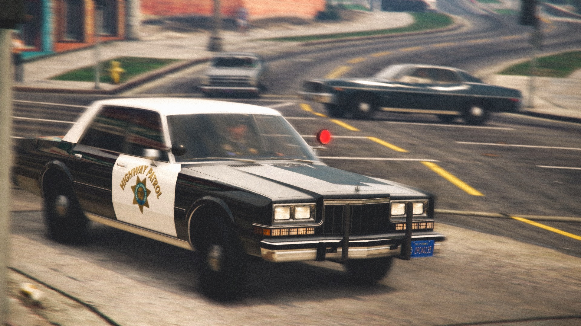 What's that?A police car without a lightbar?And what's with the red dot in the spotlight?Looks pretty unrealistic in my opinion......