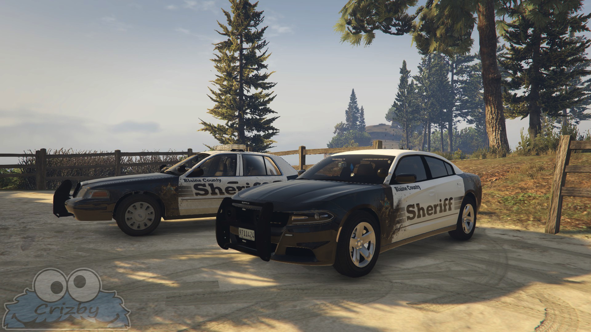 Two cruisers from Blaine County Sheriff's Office - Paleto Bay Substation - Caught at a rest stop just outside of the Paleto Forest.